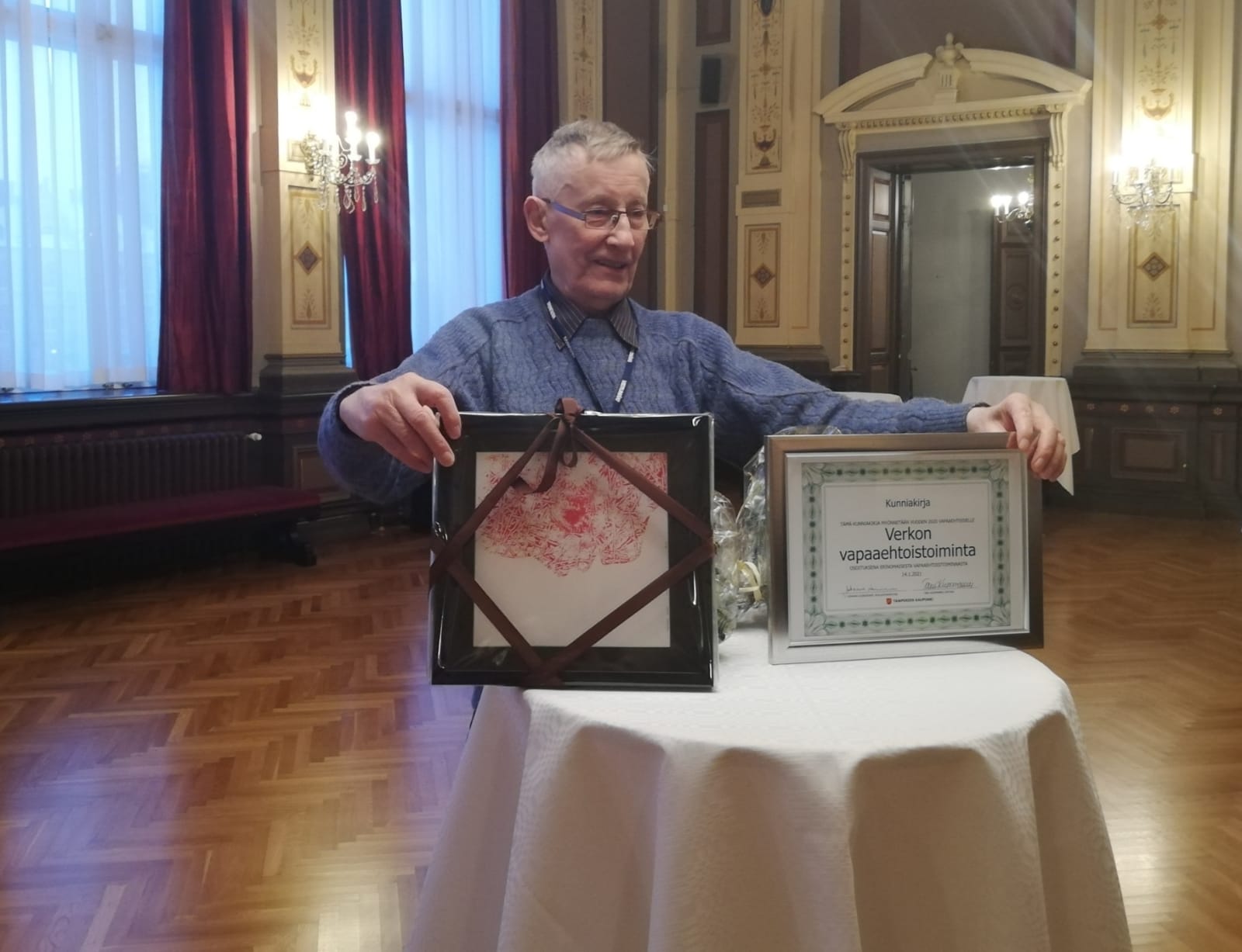 ”Olen ollut Verkossa mukana 21 vuotta. Vaimoni Sirkka tuli ensin vapaaehtoiseksi ja kehui aina, että täällä on niin mukavaa. Ajattelin, että tuotahan pitää kokeilla itsekin. Sillä tavalla minä takerruin Verkkoon.